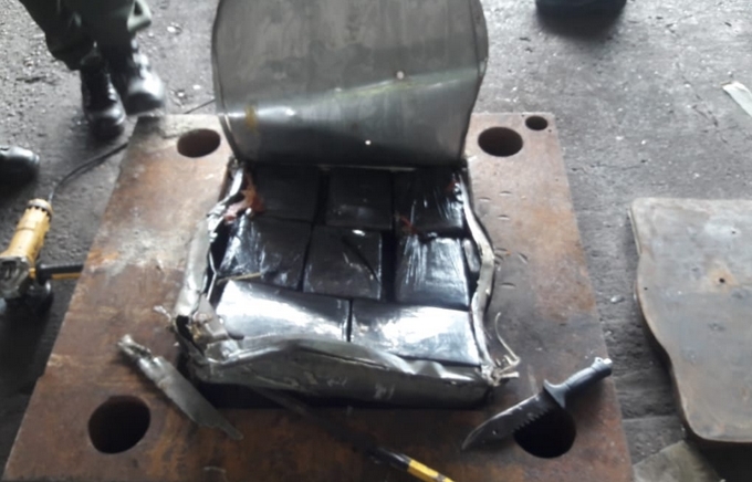 Los uniformados tuvieron que usar una sierra eléctrica para penetrar una capa de 3 centímetros de acero y así revelar una caja de latón recubierta de 2 centímetros de plomo, la cual portaba 24 kilos del alcaloide, cabe resaltar que la cubierta exterior fue sometida a un proceso de oxidación para evitar que llamara la atención.