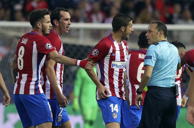 Gabi Fernández (2d) protesta al árbitro turco Cüneyt Cakir. EFE