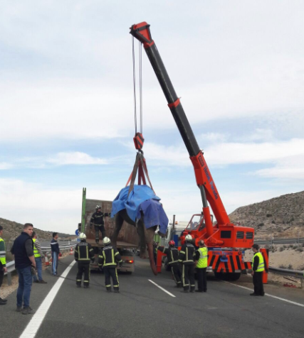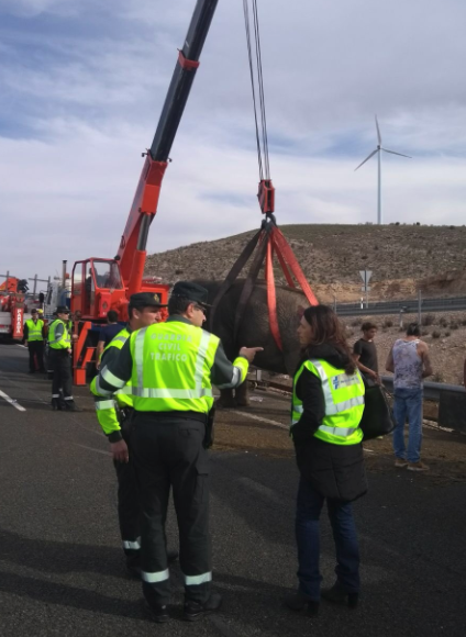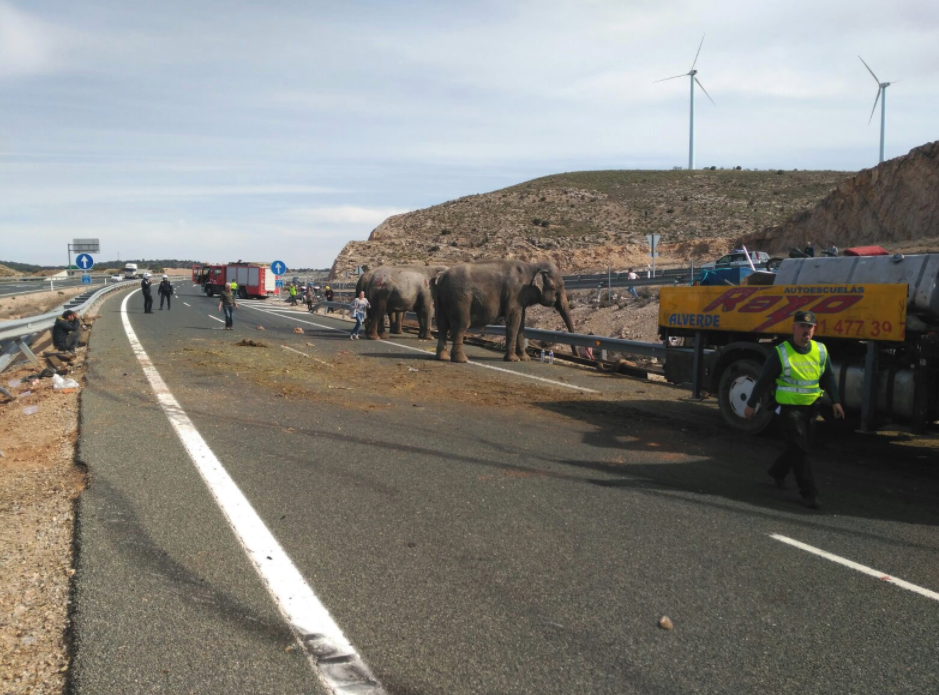 En un accidente de tránsito ocurrido este lunes 2 de abril cerca a la localidad de Pozo Cañada en España, dejó como saldo un elefante muerto y otros dos heridos.