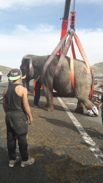 Vídeo y fotos: Un elefante murió y otros dos resultaron heridos en un accidente de tránsito