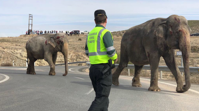 En un accidente de tránsito ocurrido este lunes 2 de abril cerca a la localidad de Pozo Cañada en España, dejó como saldo un elefante muerto y otros dos heridos.