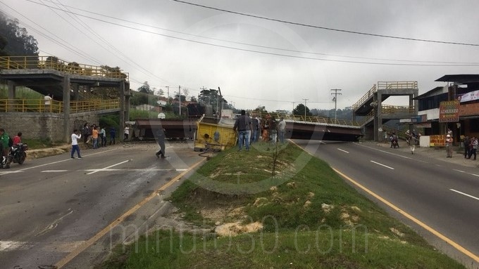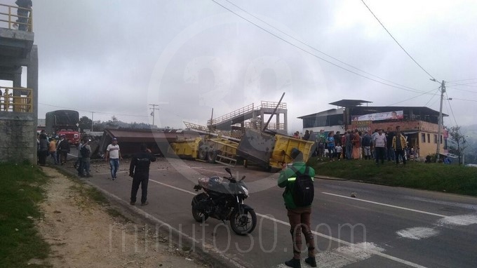 Un tractocamión que se movilizaba por la vía Bogotá – Girardot derribó un puente peatonal.