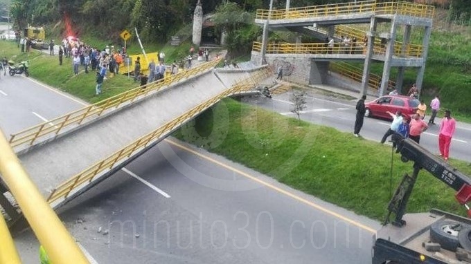 Un tractocamión que se movilizaba por la vía Bogotá – Girardot derribó un puente peatonal.