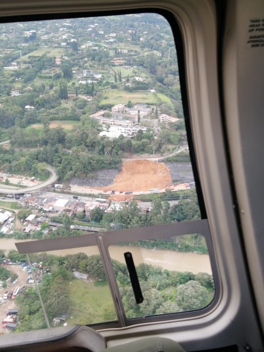 A la altura de Copacabana, Antioquia, se originó un movimiento de masa que hizo que la vía se cubriera de tierra y piedras. Por días enteros y con maquinaria pesada estuvieron removiendo el material hasta que hoy se logró la apertura vial.