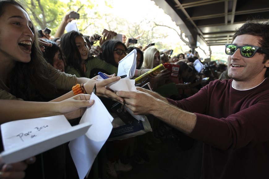 “Me escapé del colegio”, confiesa Joel Tancredi, de 14 años, quien ha aguardado durante horas para ver a alguno de sus ídolos y que le “autografíen el celular”.