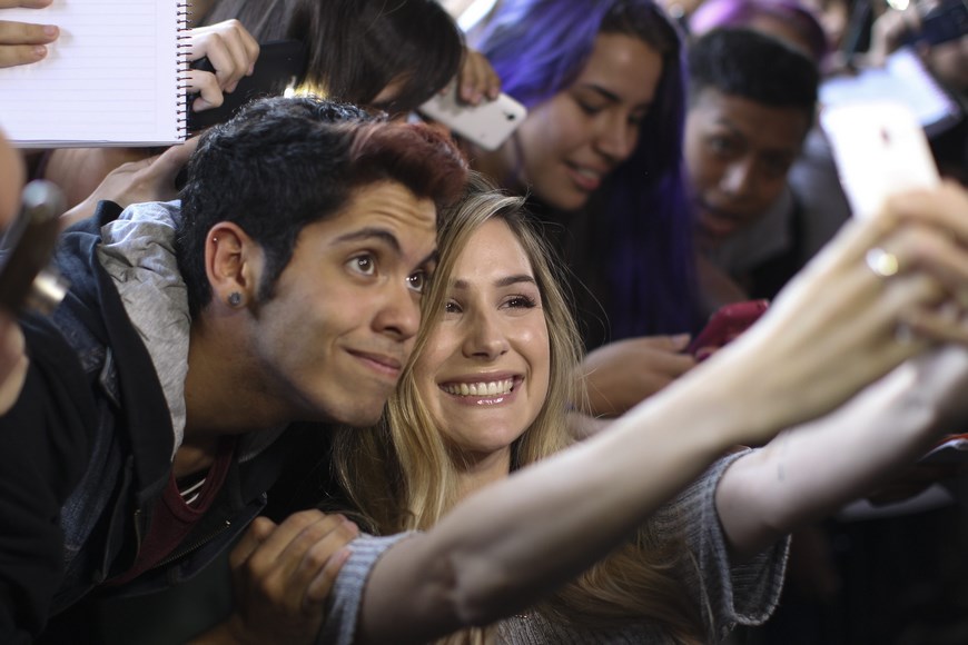 La “youtuber” española “Lana” se toma fotografías con seguidores, este 10 de abril de 2015, durante el “Club Media Fest”, el primer festival internacional de “youtubers” en Latinoamérica, en Buenos Aires (Argentina). EFE