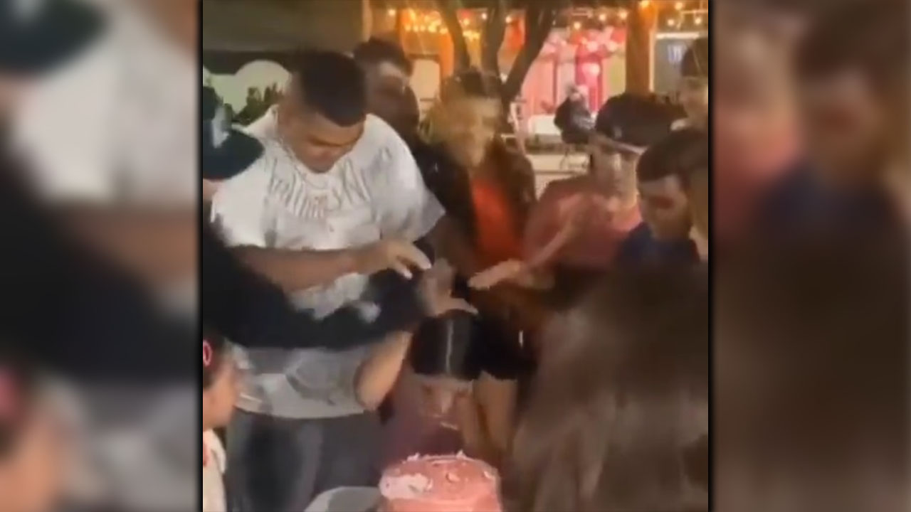 Al momento de poner la cara de la cumpleañera en el pastel, esta estaba sujetando el cuchillo con el que iban a partir la torta para compartirla, por lo que en medio del desorden, esta le causó una herida a una de las personas que estaban detrás de ella.