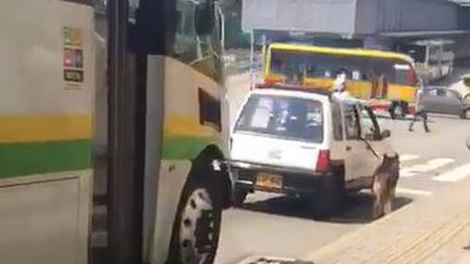 Transeúntes que se movilizaban por el lugar se solidarizaron con el peludito, incluso hasta un motociclista le obstaculiza la vía al carro para que no continúe en marcha.