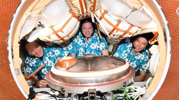 Our first time in our #Soyuz since we docked to @Space_Station in March. There was evidently some confusion over what qualifies as a spacesuit. pic.twitter.com/CWfdJIrLJh