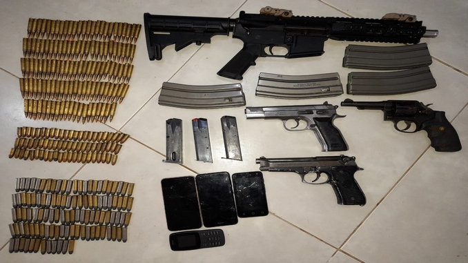 En el operativo se les incautó un fusil de asalto calibre 5.56 mm, dos pistolas calibre 9 mm, un revolver calibre 38, siete proveedores, así como abundante munición de guerra para las mismas, además de equipos de comunicaciones.