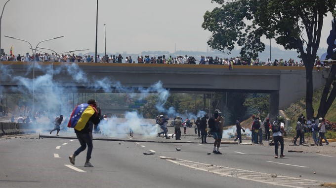 Efe constató que la GNB, policía militarizada, ha liberado gases lacrimógenos en este punto de la capital venezolana donde se encuentran varias decenas de manifestantes, y algunos de ellos han respondido con bombas molotov o piedras.