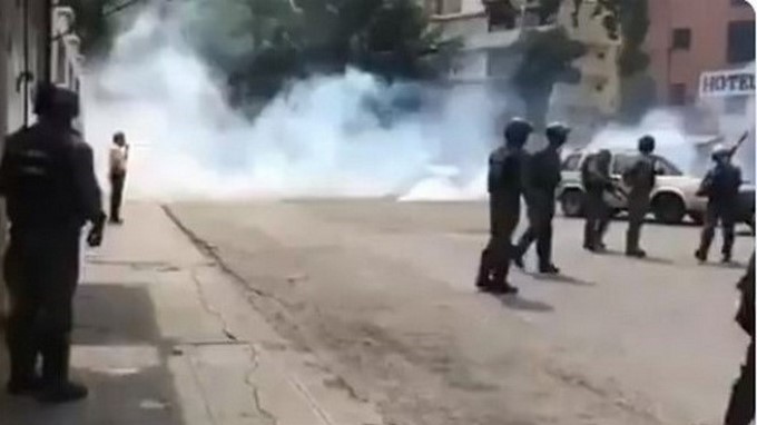 #1May 11:30 am #Apure #VamosConTodo Manifestantes que atendieron el llamado de @jguaido en la avenida Caracas de San Fernando de Apure fueron reprimidos por funcionarios de la Guardia Nacional con bombas lacrimógenas. Vídeo: @cleviscarpio pic.twitter.com/4hZD4YHrzS