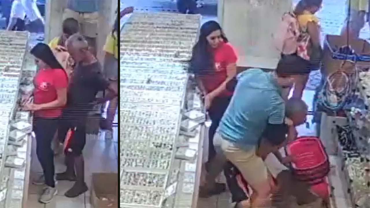 Este incidente se dio en una tienda de accesorios en Brasil, y se puede ver cómo el agresor se acerca a la joven mientras ella se encontraba acomodando productos de espalda y con malas intenciones, el hombre se acerca por detrás y pone su mano en la cintura de la víctima, mientras la roza con su cuerpo.