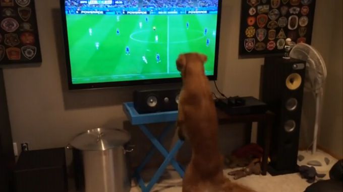 El can, quien fue filmado por su propietario, se puso frente a la televisión y comenzó a brincar cada vez que el balón era puesto en movimiento, mientras que el otro perro de la familia ni siquiera se inmutó con el enfrentamiento, pues se quedó dormido en el piso.