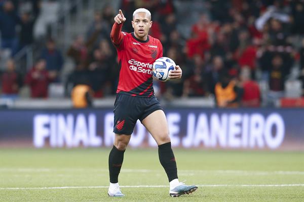 "Un abrazo grande. Gracias a todos los aficionados del Athletico (Paranaense). Estamos juntos", dijo el ariete de 18 años en una breves declaraciones a la prensa en la zona de embarque de la terminal.