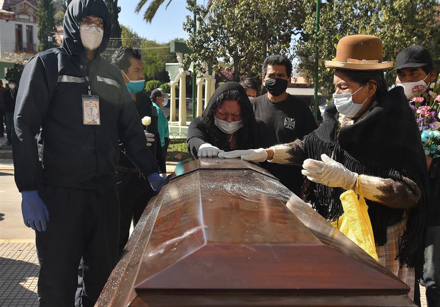 Enterrar a los muertos en tiempos de COVID-19 se ha vuelto un drama en una región boliviana, donde ante la alta demanda de nichos y cremaciones los familiares deben esperar por días con los cuerpos de los difuntos en sus hogares, con miedo a represalias de sus vecinos.