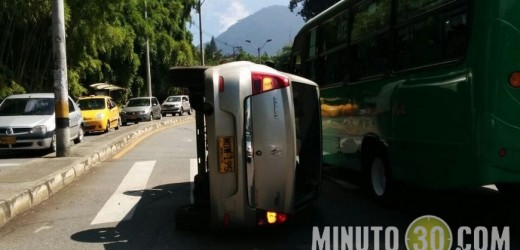 Minuto30.com-. Solo problemas en la movilidad ocasionó el volcamiento de un carro en la calle 10 A con la carrera 34, cerca al centro comercial Vizcaya.