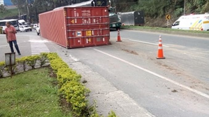 El volcamiento de un vehículo de carga en plena variante al municipio de Caldas, generó gran congestión este viernes por la mañana.