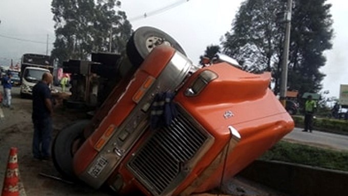 El volcamiento de un vehículo de carga en plena variante al municipio de Caldas, generó gran congestión este viernes por la mañana.