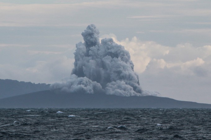 Una erupción del volcán, según los expertos, causó el corrimiento de tierra que al caer al mar desató olas de unos tres metros que impactaron sin previo aviso la noche del día 22 con las costas.
