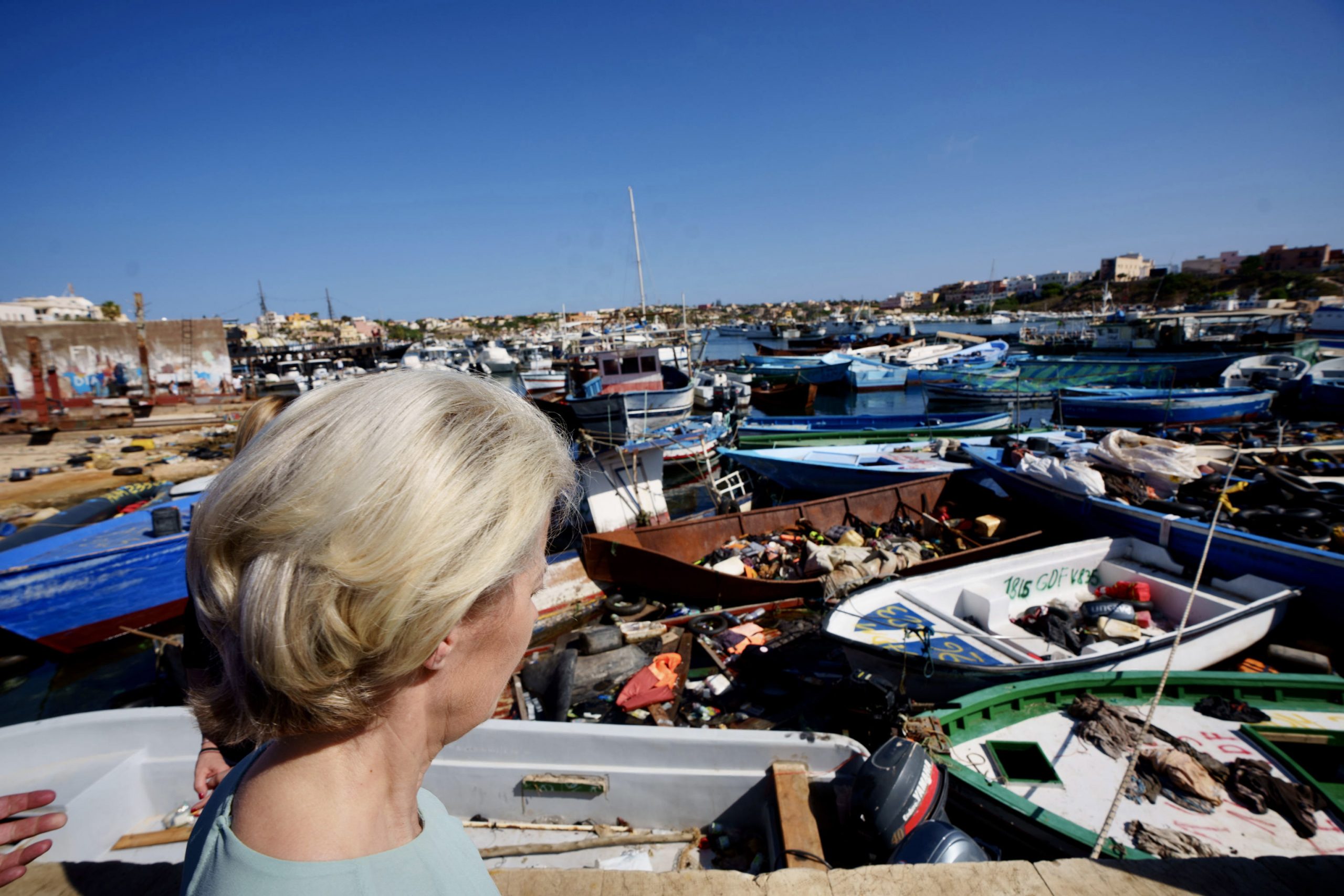 Minutos antes, las dos líderes recorrieron durante un paseo de apenas dos horas los puntos candentes del drama migratorio de Lampedusa, como el muelle en el que miles de migrantes quedaron varados hace unos días y el centro de acogida de su puerto, gestionado por la Cruz Roja con escasa capacidad para 400 personas.