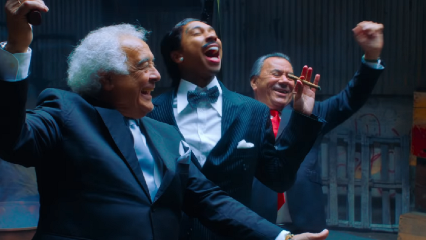 En otras escenas, el artista de ascendencia vietnamita y jamaiquina, aparece vestido como el gánster Al Capone, mientras que Los del Río parecen ser sus segundos.