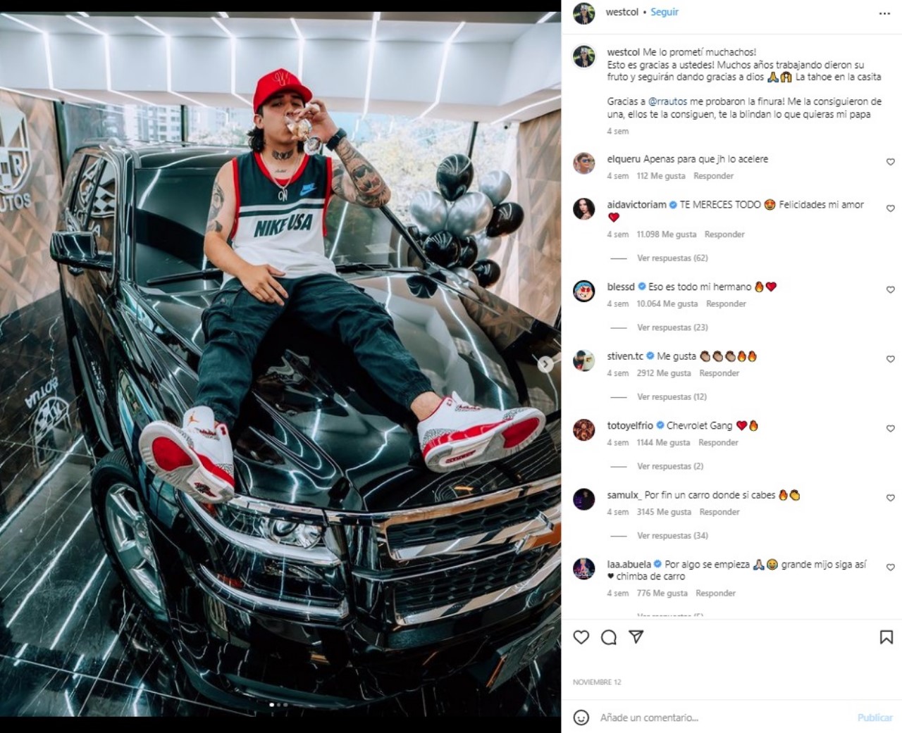 Por medio de sus redes sociales, Westcol ha publicado varias fotografías mostrando sus nuevos lujos.