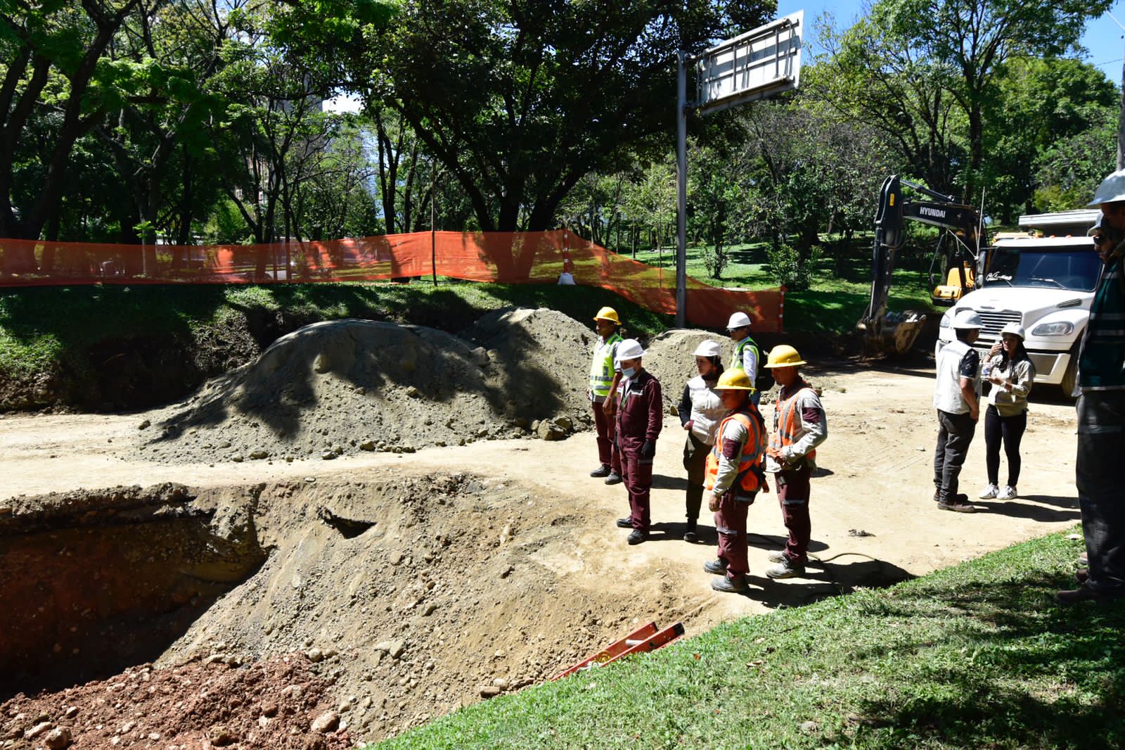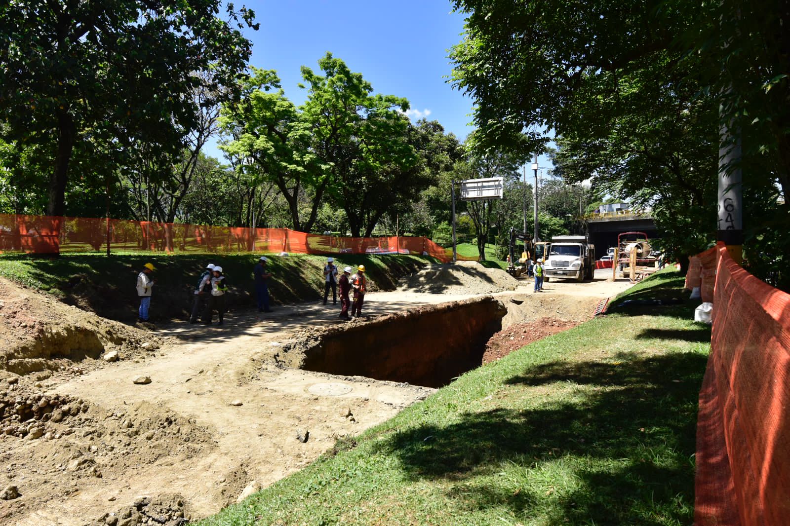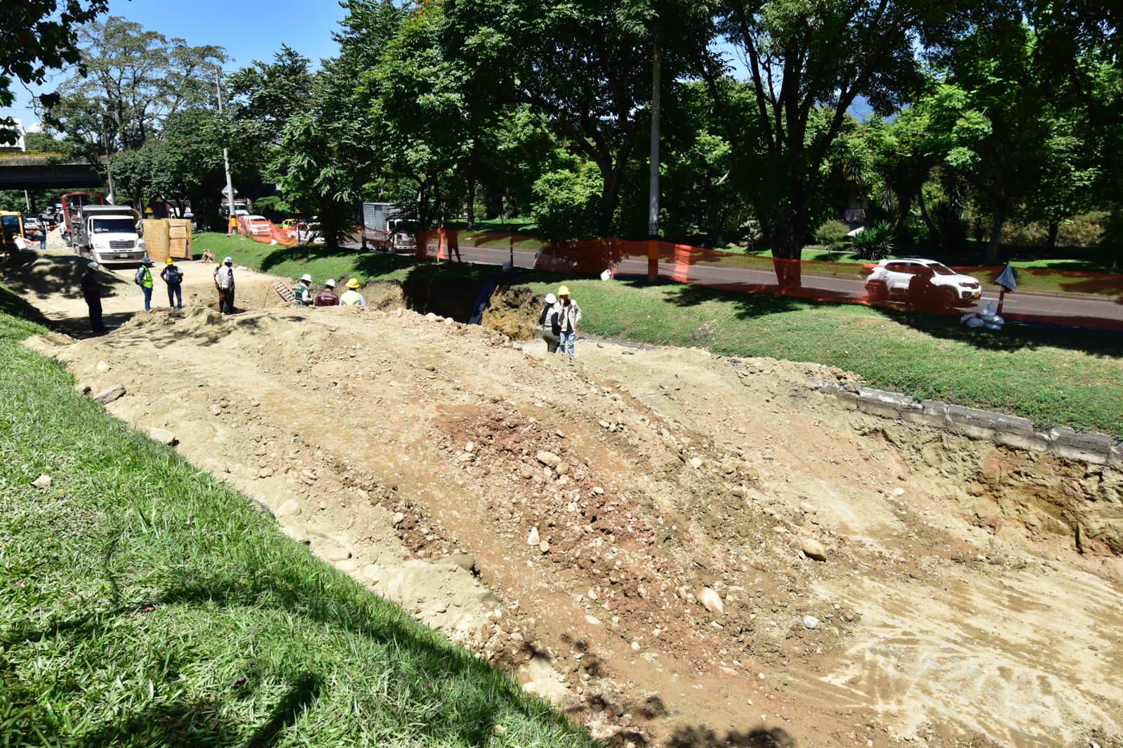 Deben concluir de manera segura la reparación en una unión de la tubería del interceptor de alcantarillado que conduce las aguas residuales hasta la planta de tratamiento Aguas Claras, en el municipio de Bello, para posteriormente hacer los llenos de los nichos, pavimentar la vía y restablecer la movilidad en la zona.