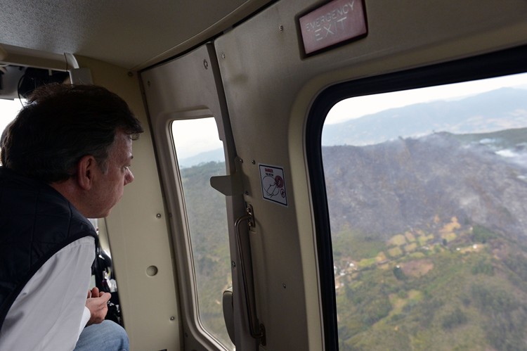 Minuto30.com .- Después de sobrevolar la zona afectada por el incendio que se inició el jueves anterior en el municipio de Cota, Cundinamarca, el Jefe de Estado, Juan Manuel Santos, señaló que se está en el trecho final para controlar el incendio.
