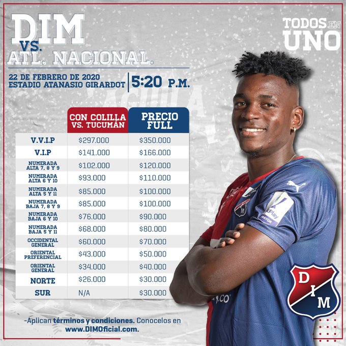 El elenco local aprobó descuento por tener la colilla del partido ante Atlético Tucumán: Quienes compraron boleta para el partido vs. Atlético Tucumán podrán acceder a un precio especial en la venta boletería suelta para el clásico a disputarse entre DIM vs Atlético Nacional.
