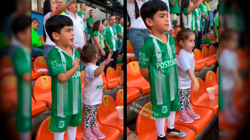 La pequeña hija de Cucchi y el hijo de Costa fueron grabados en las tribunas del Estadio Atanasio Girardot entonando las estrofas del himno antioqueño previo a un partido de Atlético Nacional y vistiendo camisetas del ‘Verdolaga’ para apoyar a sus padres.