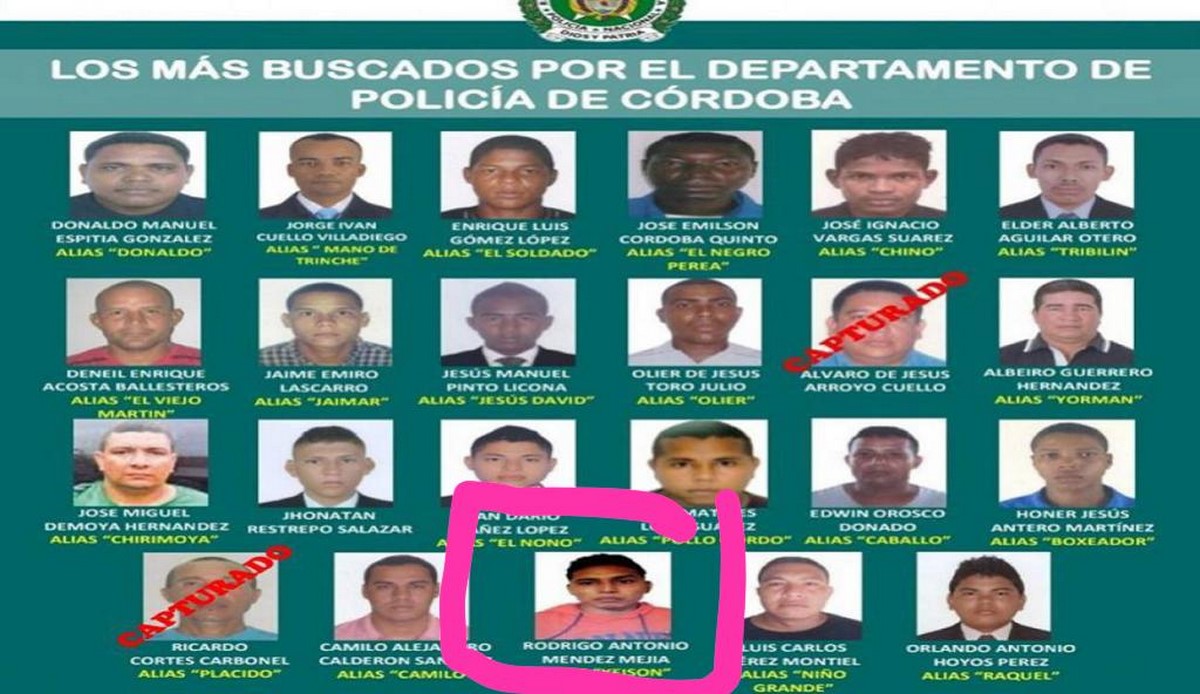 La Policía dijo además que ‘Yeison’ tiene una trayectoria delictiva de más de diez años y registra siete órdenes de captura vigentes, por los delitos de concierto para delinquir, extorsión, desplazamiento forzado, reclutamiento ilícito, secuestro simple y homicidio. Indican que sería coordinador de las extorsiones a los diferentes gremios productivos de los municipios de Caucasia, Cáceres, y Tarazá en el departamento de Antioquia.