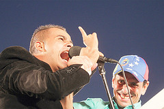 – Ingresó a la tarima del cierre de campaña de Henrique Capriles en la ciudad de Maracaibo.