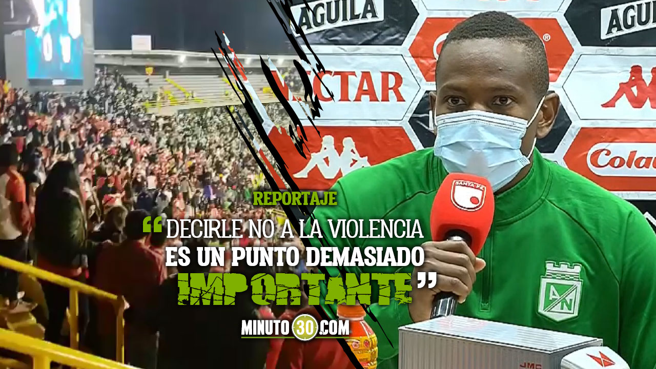 “Decirle no a la violencia es un punto demasiado importante”, subrayó el jugador del equipo ‘Verdolaga’, YersonCandelo, finalizado el encuentro entre Independiente Santa Fe y Atlético Nacional.