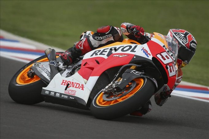 Márquez logró un mejor tiempo de 1:39.171 y superó en escasamente una décima y media de segundo a su compañero en la escuadra Repsol, Dani Pedrosa, para mantenerse al frente de la clasificación y como el más claro aspirante a lograr la primera posición en los entrenamientos oficiales vespertinos.