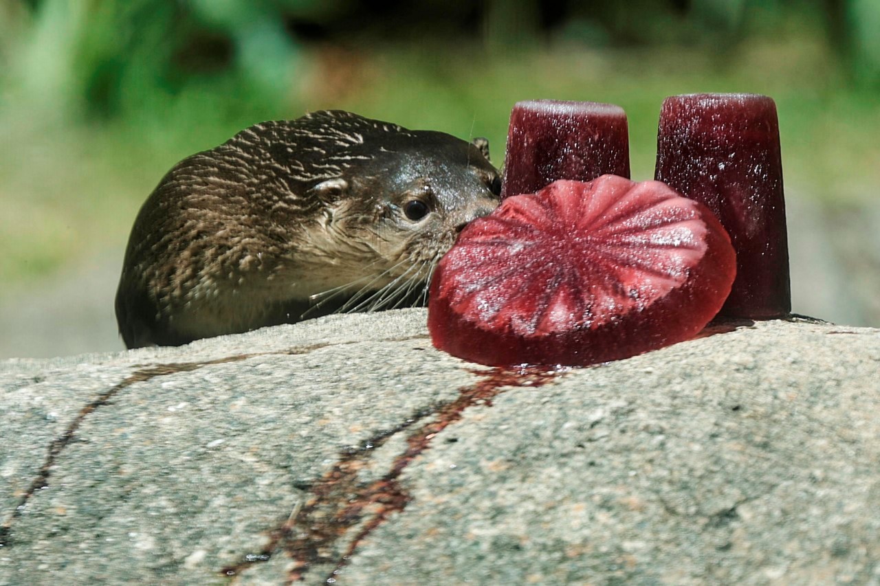 Una nutria come un helado en el zoológico de Río de Janeiro (Brasil). El zoológico de Río de Janeiro decidió innovar en la dieta de varios de sus animales ante las elevadas temperaturas del actual verano austral y este viernes optó por ofrecerles helados de carne molida o de frutas, dependiendo del caso, para ayudarlos a amenizar el calor. EFE/Antonio Lacerda